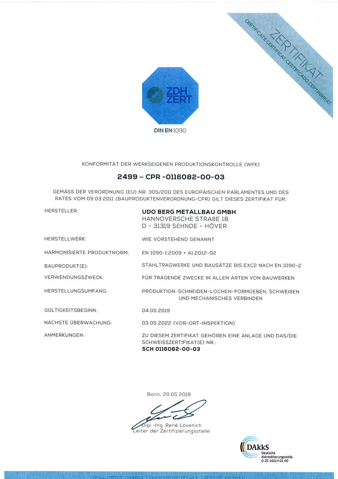 Schlossermeister Udo Berg gründete die Firma 1969 in Sehnde/OT Höver. Da sich kein Nachfolger aus der Familie fand, wurde das Unternehmen zum 01.01.1996 von Metallbauermeister Andreas Behrend übernommen und die Udo Berg Metallbau GmbH gegründet.